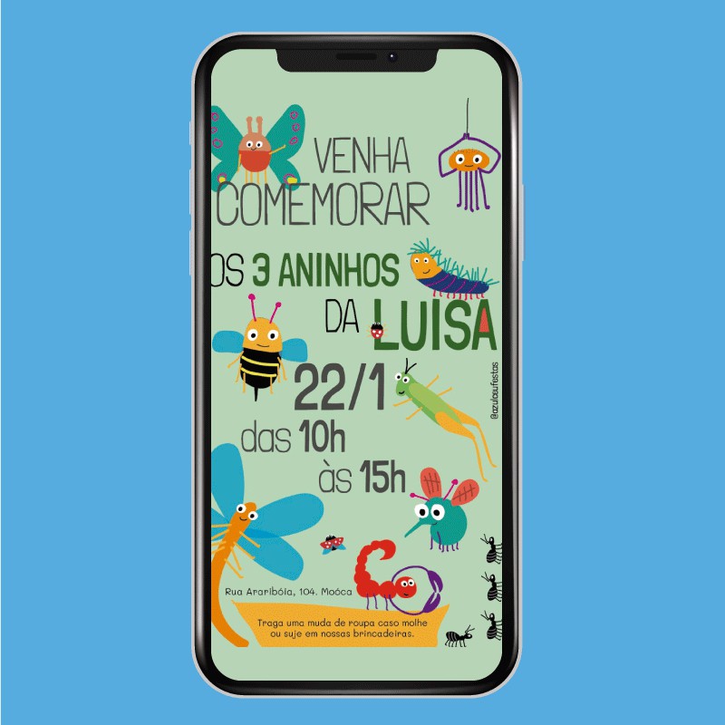 O convite é entregue em formato .PNG ou .PDF com alta resolução.